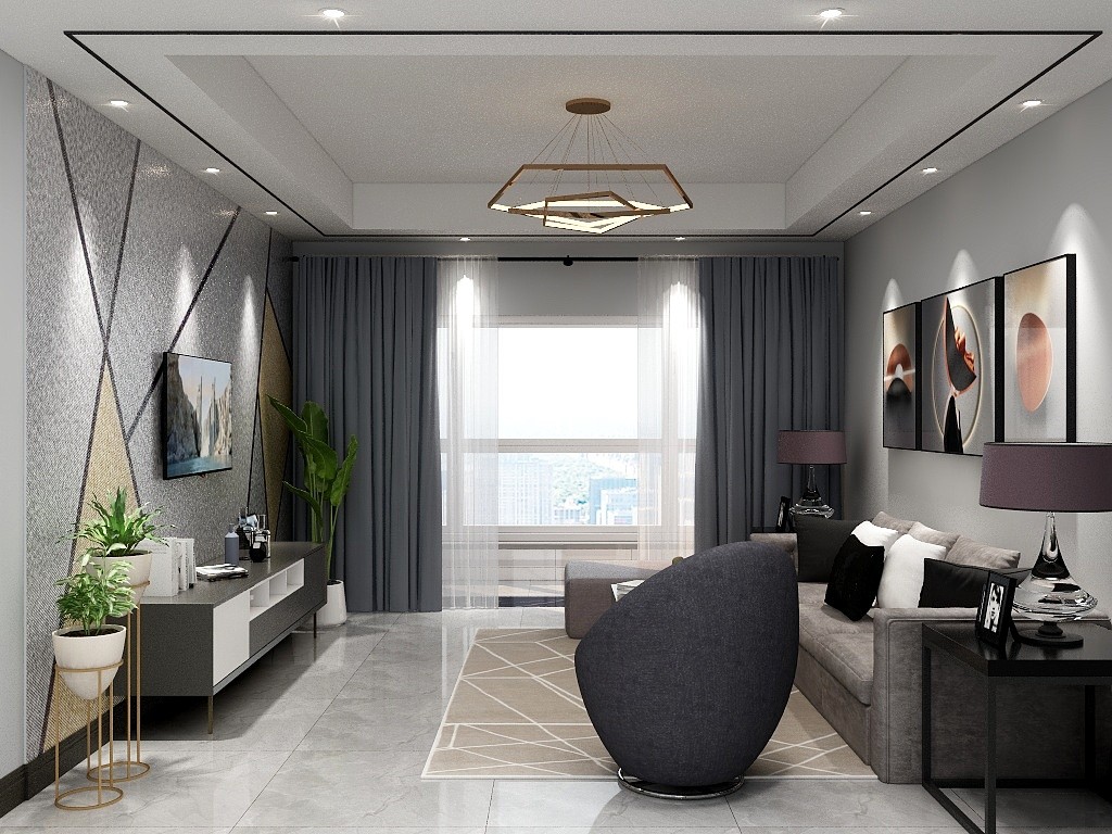 三室两厅一厨一卫,现代简约风格。