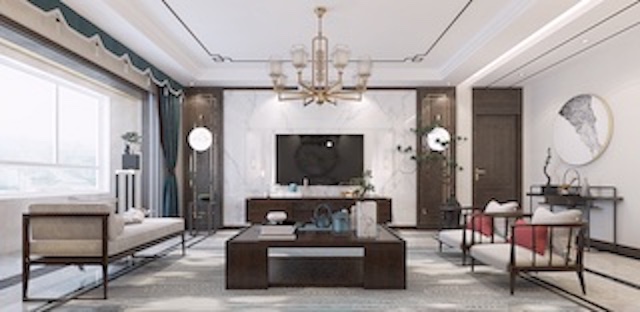 设计风格为新中式,居住3口人,业主喜欢轻硬装重软装的装修效果,希望设计更开放、艺术,除了卧室外,都不希望太生活化。房子面积比较大,需要尽量显得大气、突出空间感。