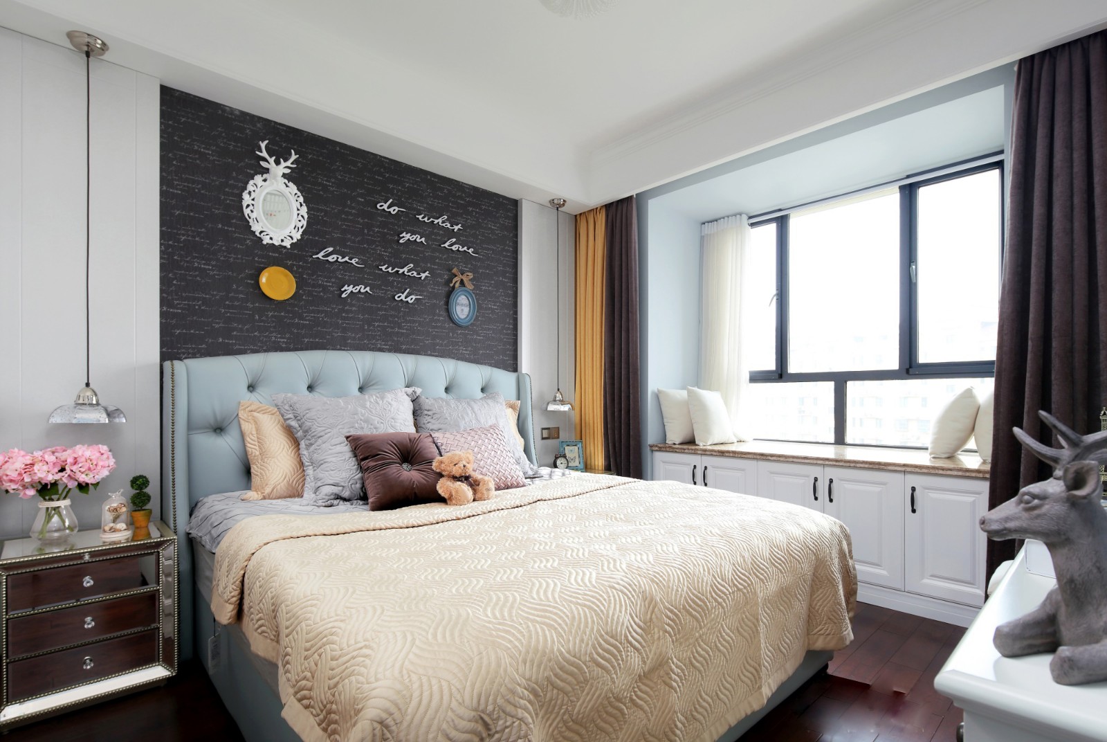 本次案例是一个125方的普通房,有限的空间里承载着年轻夫妻的美好生活期望。通过设计师的精心雕琢将现代美式与古朴禅意相融合,简单的对称布置与色彩穿插,不同程度的藏蓝色与米色的对比让空间显得格外的温馨、稳重、雅致;皮革铆钉等元素则让空间稍显复古玩味,花鸟意境的软装又将空间丰富了几种层次。相信在这样的人文家居空间,都有种“岁月静好,安之若素”的情愫吧……