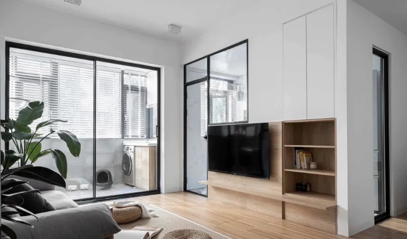 用百叶窗当窗帘,其实也能减少窗帘的厚重,让小户型显得拥挤。