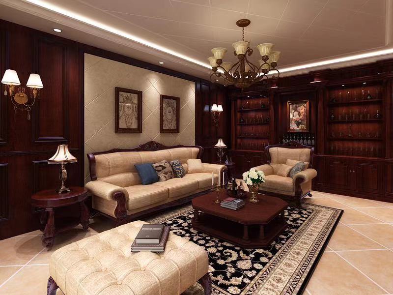 美式灯光,软包,地毯,拼花地板