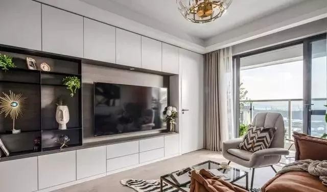 电视背景墙面局部镂空 收纳格与开放格并行