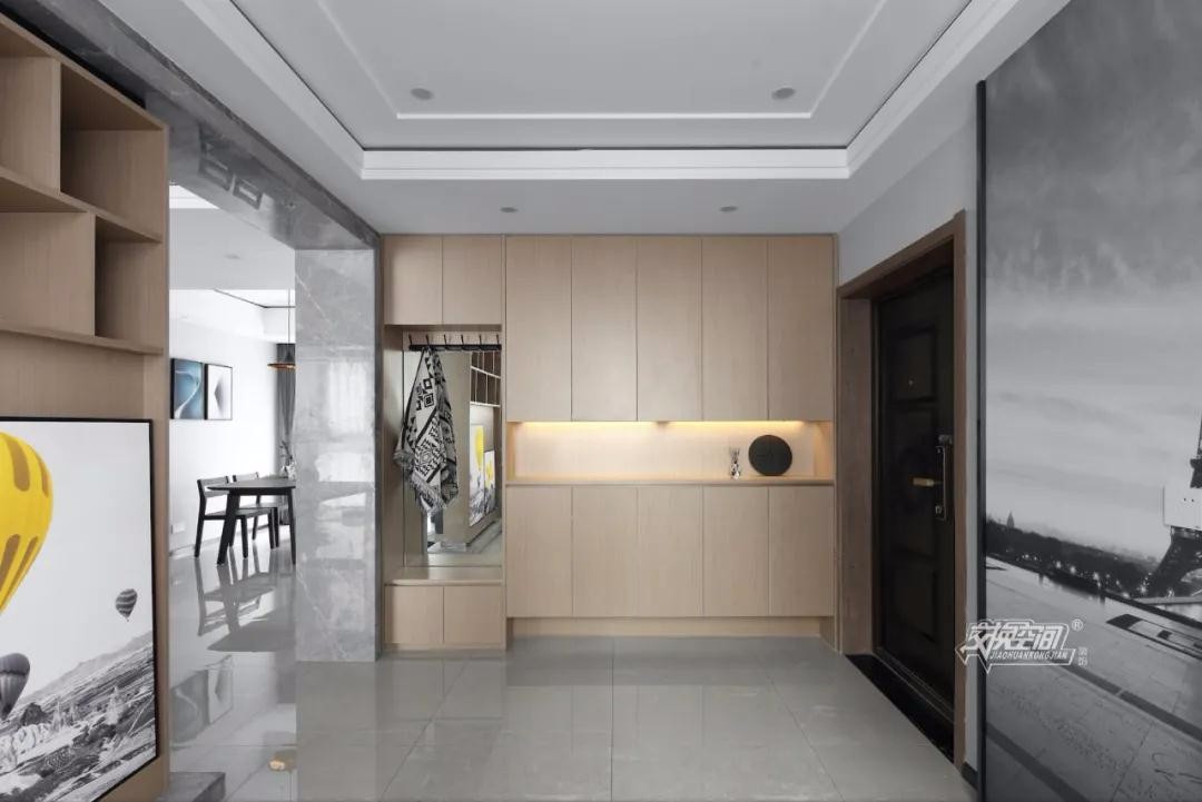 通道尽头选择了灰色点缀黄色装饰画,极富视觉冲击力,为整个空间增添活力。