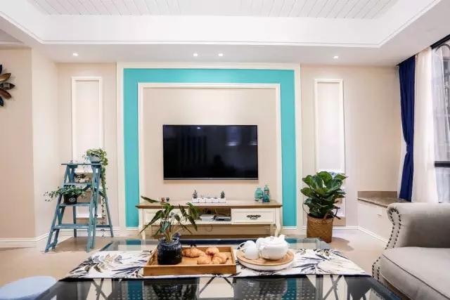 △这是一套120平米的美式田园三居室,有了蒂芙尼蓝的加入,为美好的田园风情加入了浪漫的气息。