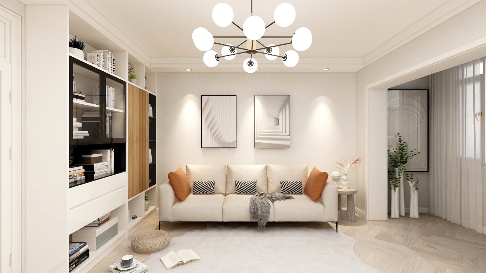 客厅简简单单的布置,沙发后侧布置氛围灯。