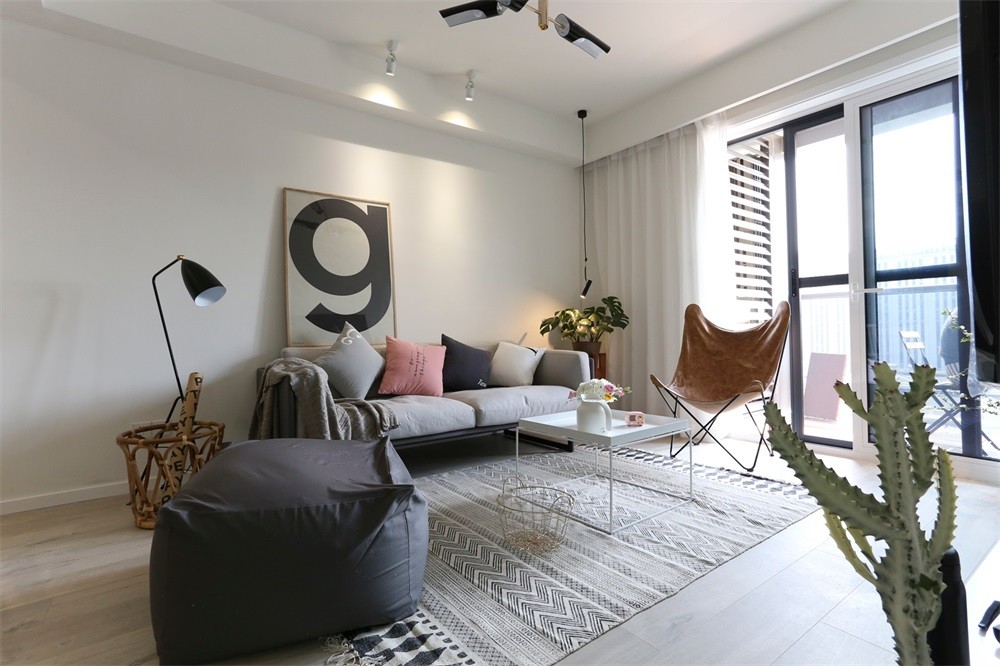 沙发角落加了一盏小吊灯,让空落落的角落也变得生动起来。