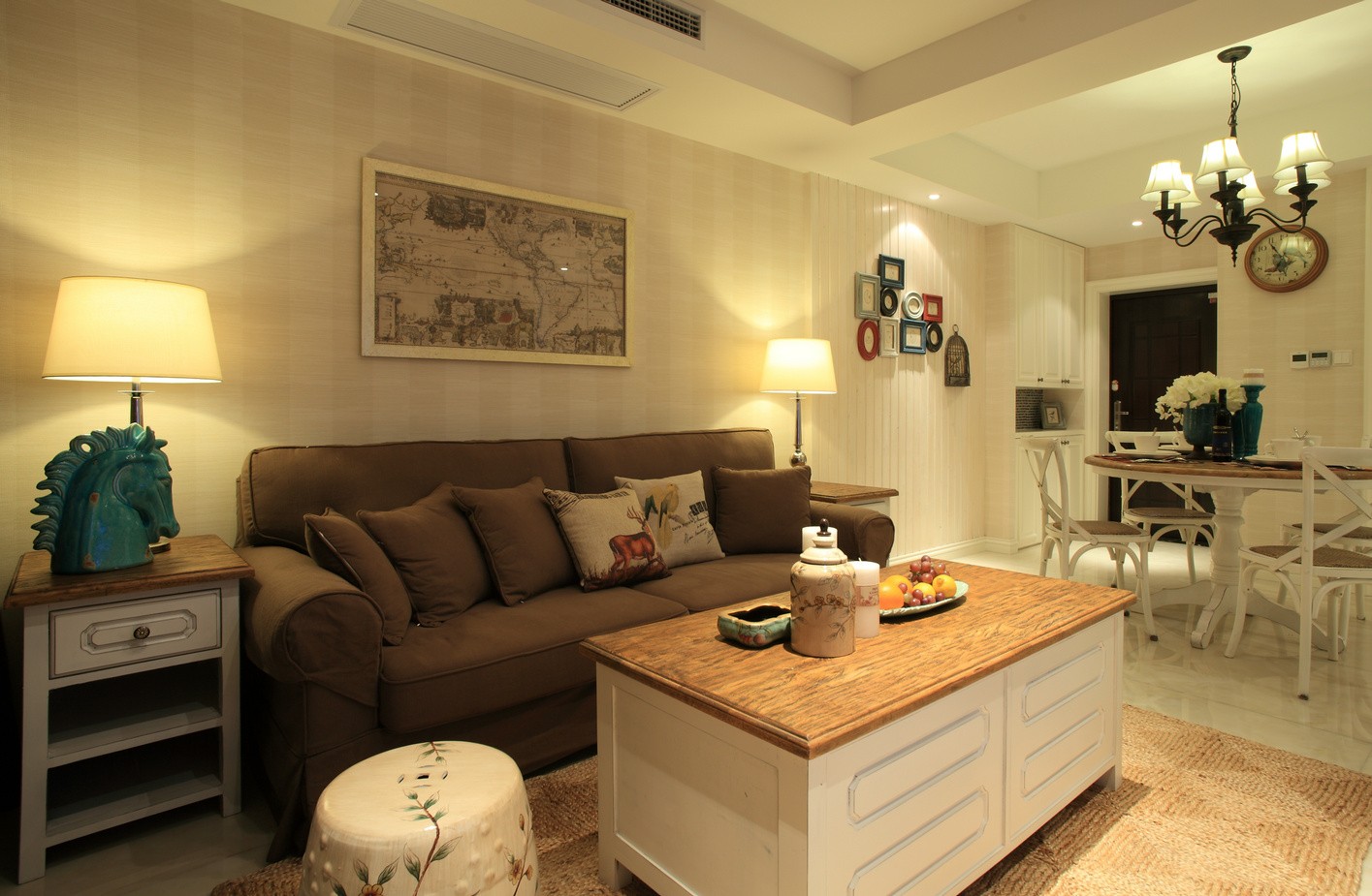 客厅色调大部分设计以浅色为主色调,用少许亮色进行点缀。