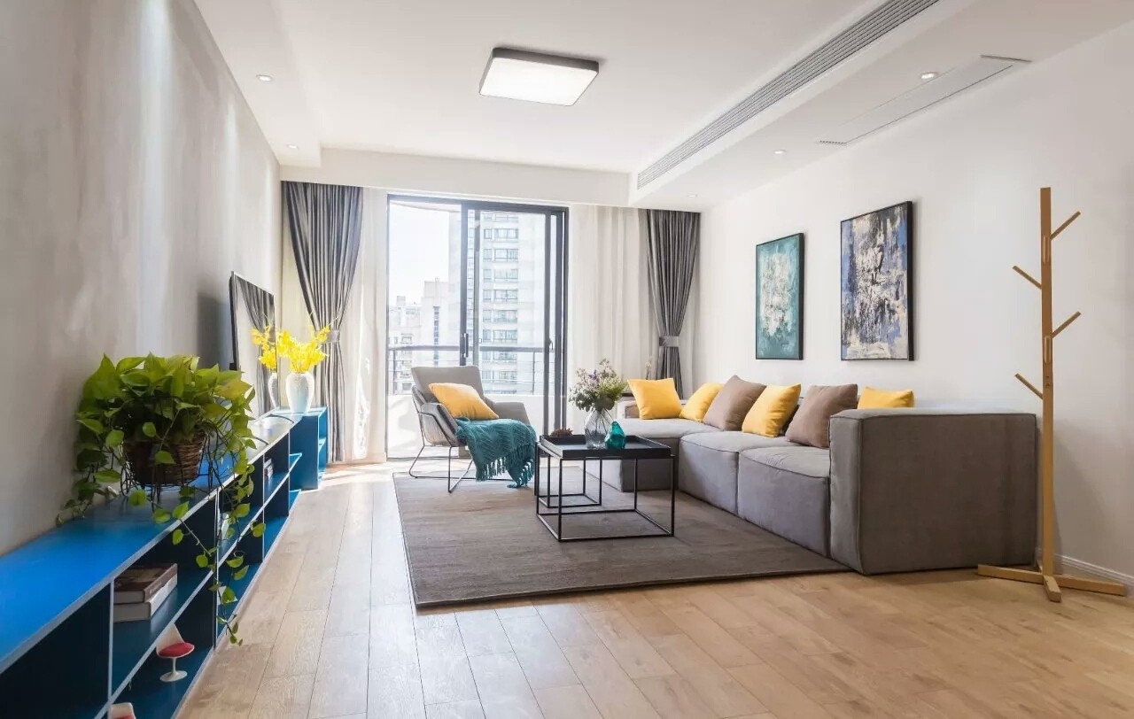 本案名为“色彩与阳光交织的温暖家”的三房北欧风