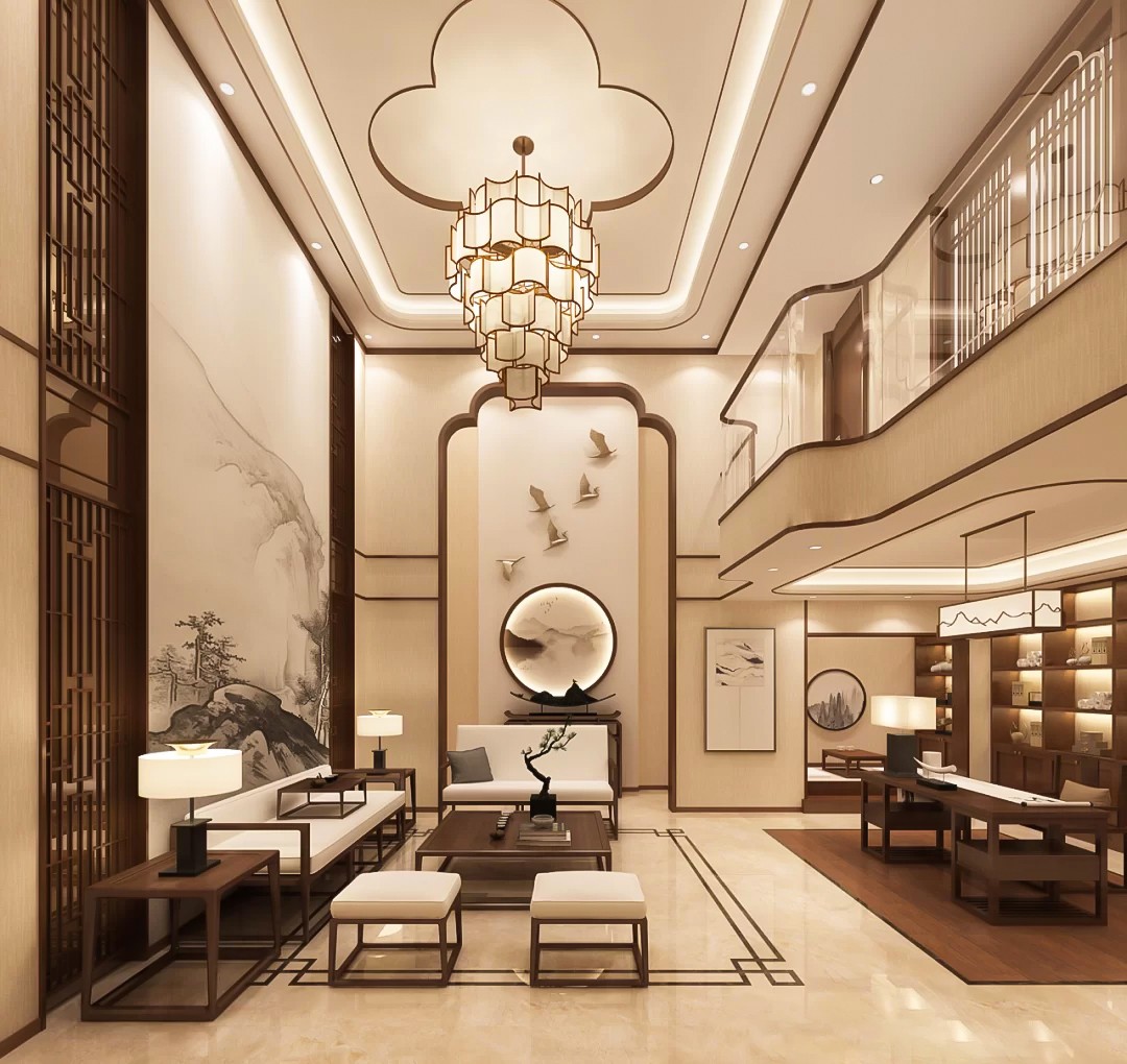 本案运用大量实木中式家具以及中式风独特的线条,打造出端庄沉稳的空间,并表达了闲素淡雅的中式情怀,彬然儒雅,白韵之境。
