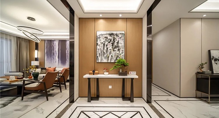 府邸纵深,气度雍容。古风中国与现代美学相遇,融合于飘逸磅礴的背景。洒脱利落,完美的归家礼遇深度贴合居者身份。