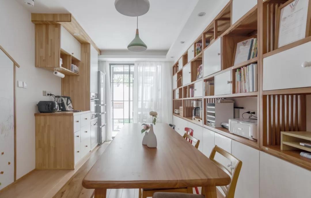 户型改造后将厨房移位,原来拥挤不堪的卫生间拓宽了使用面积,原来的各个空间被设计师乾坤大挪移,全家的房间都连通起来。