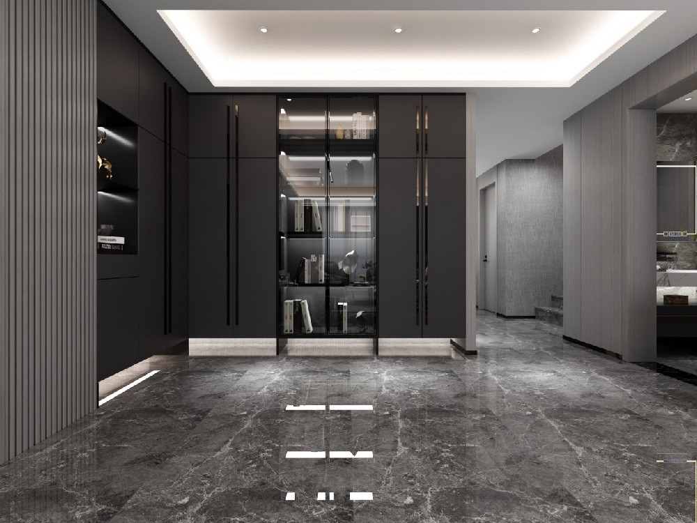 搭上金属的轻奢家具,墙面的抽象画让人眼前一亮。