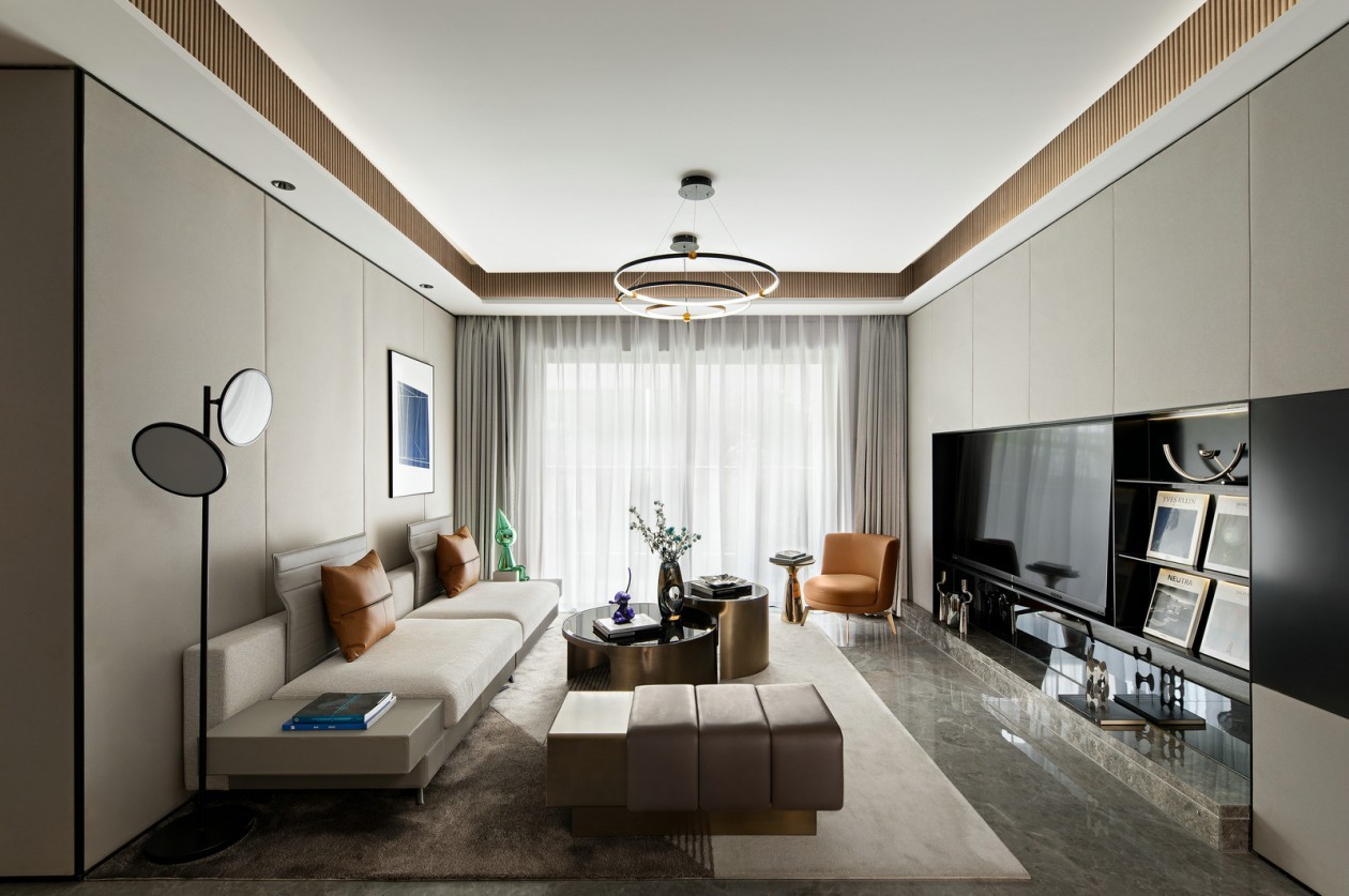 客厅大空间在内嵌式的设计方式,去重现一个精致雕琢的宽广天地。