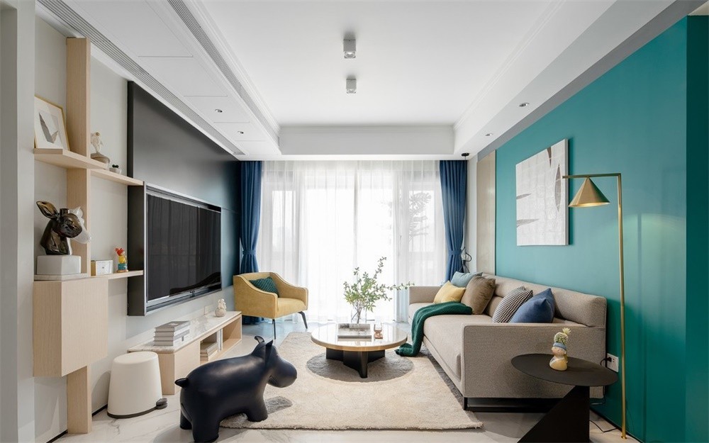 业主本身就喜欢有视觉冲击力的颜色,我们这次运用了黄,蓝,孔雀绿等颜色,软装可根据生活所需要而改变、根据一年四季交替去变更,可以根据自身心情去舍弃或重新点缀。