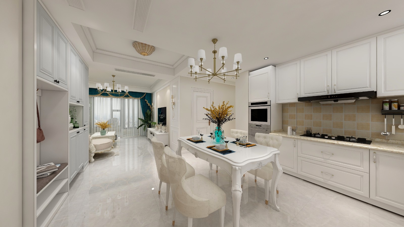 客厅餐厨一线相连,动线合理,奢华景观阳台尽显舒适