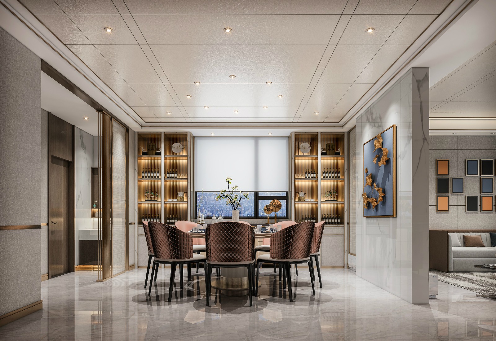 四室两厅两卫的高端户型搭配上现代轻奢的设计风格让居住不仅仅是一种感受,还是一种行为方式,自然流露出居住者的尊贵与荣耀。