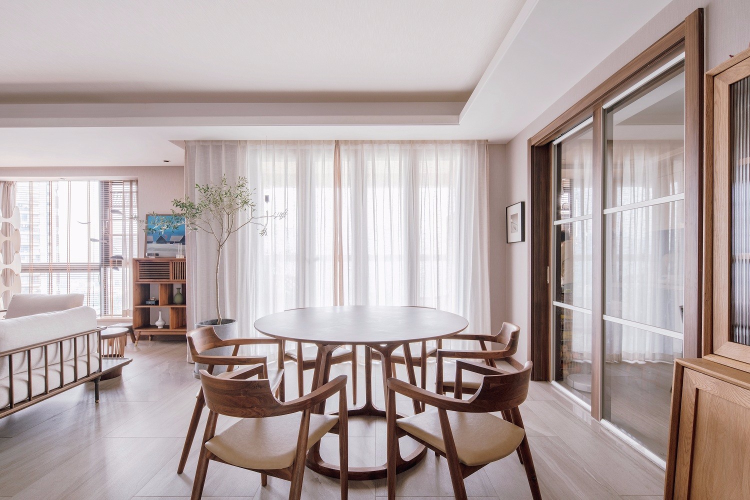 整个公领域规划为客餐区域,选择原木、藤条、传统日式风格中融入更多现代元素,亲近自然,朴素大方。