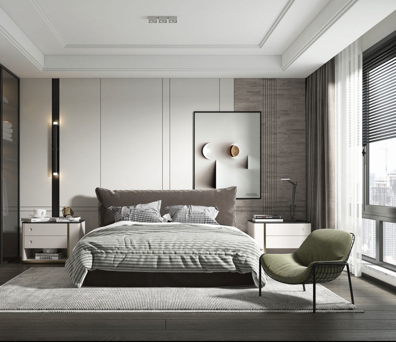 房间采用了灰色调,搭配地毯的颜色,显得格外静谧
