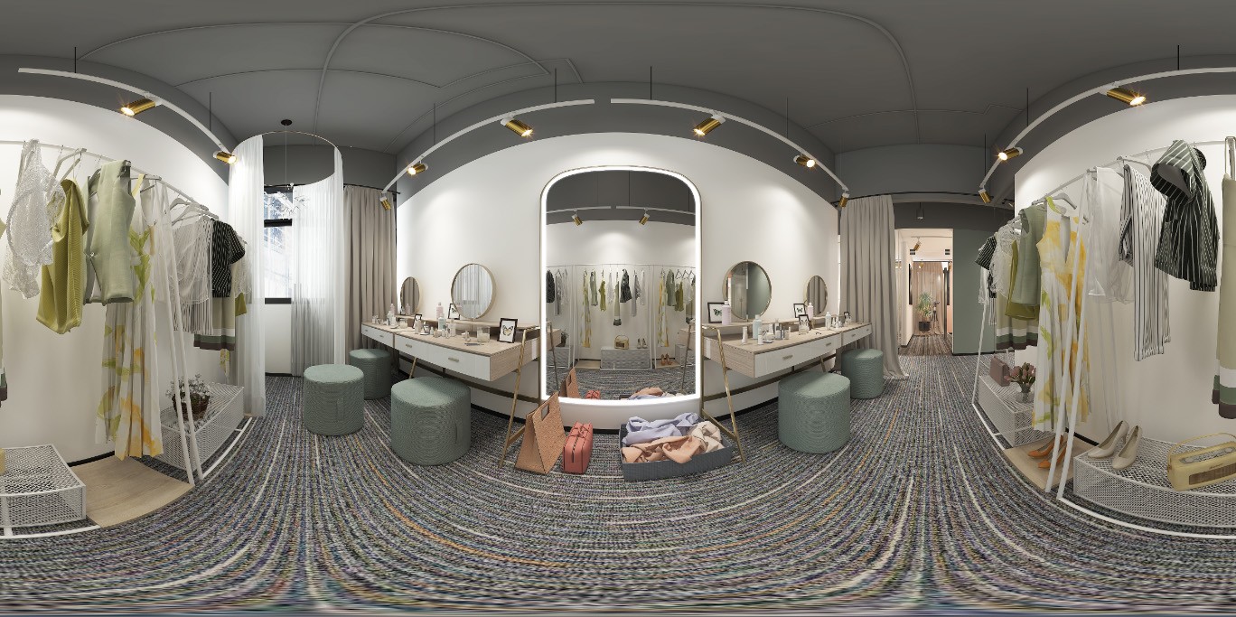 化妆休闲区在功能划分清晰,空间保持净白的同时以软装带动空间灵动感。