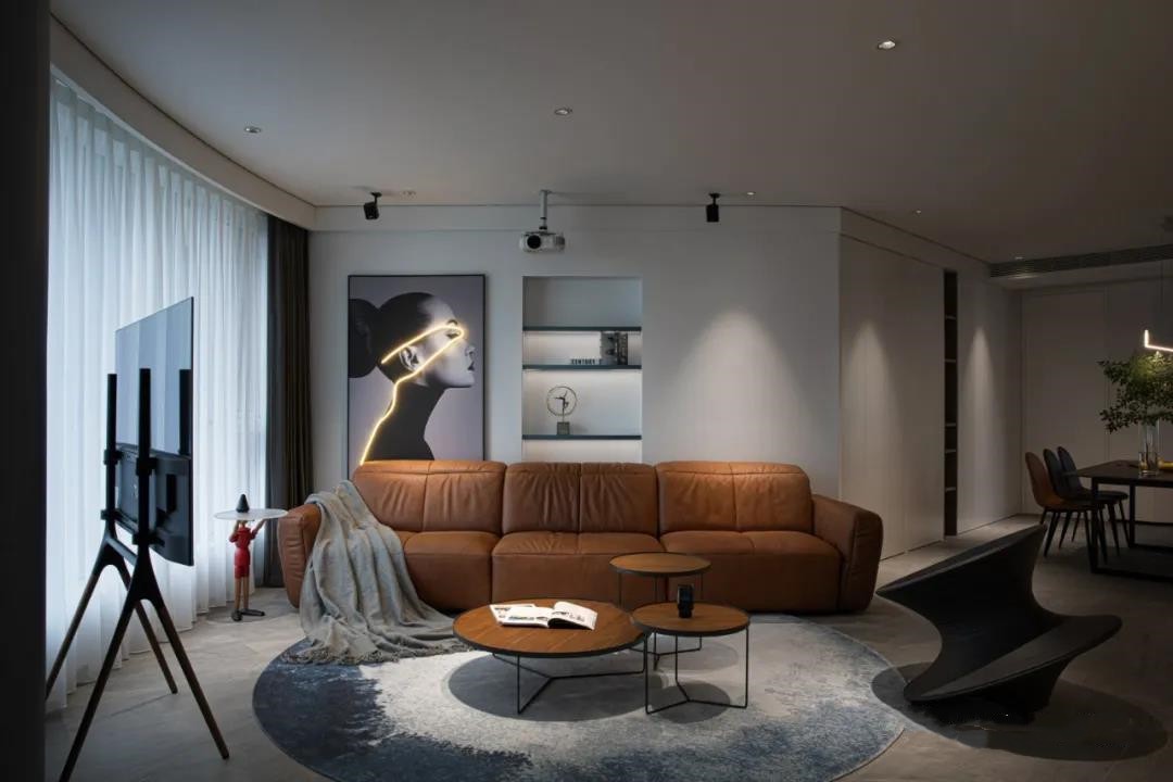 设计师安装了落地式的电视机,并安装了的投影设置,可以随心选择喜欢的观影模式。