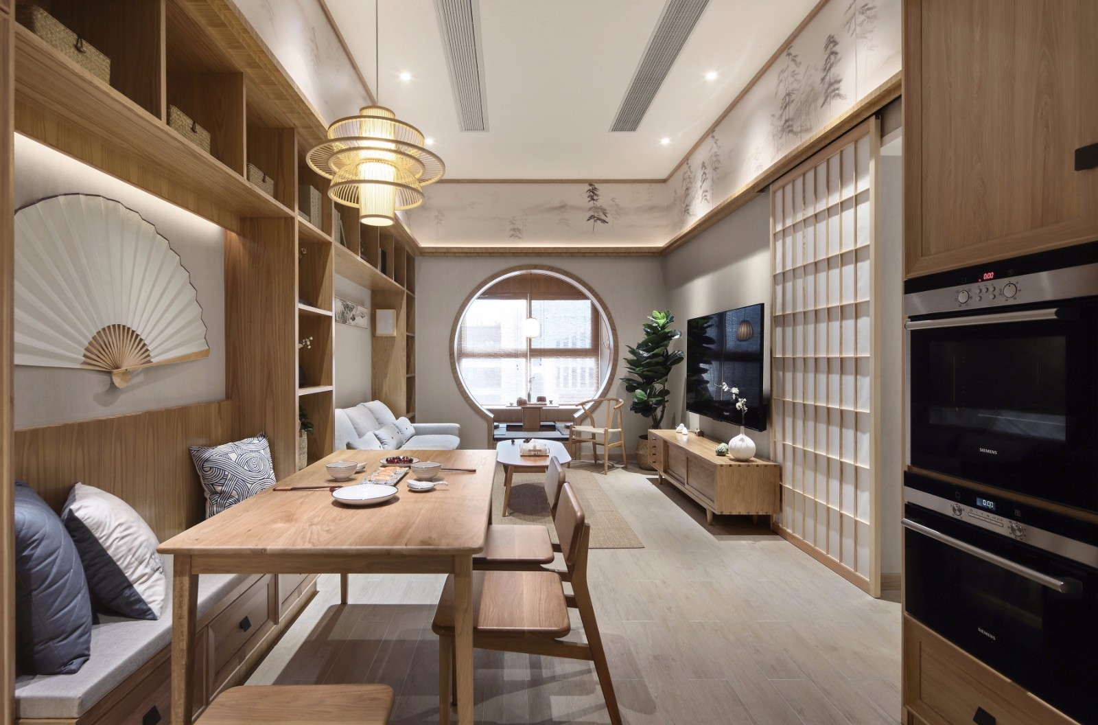 整体户型来讲还是不错的,餐桌在厨房门口,动线不好,使用空间太狭小,改造成餐客一体,沙发结合餐桌卡座,增加储藏空间