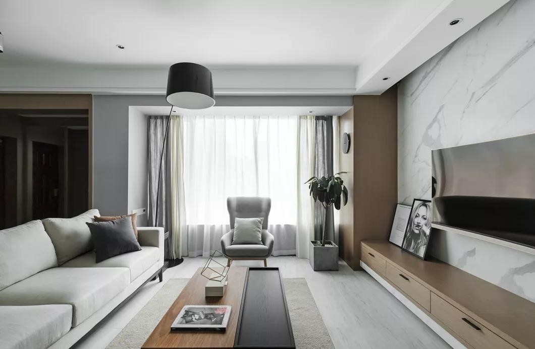 客厅以灰色调为主基调,加入原木的元素,满室洋溢着干净、素雅之味。