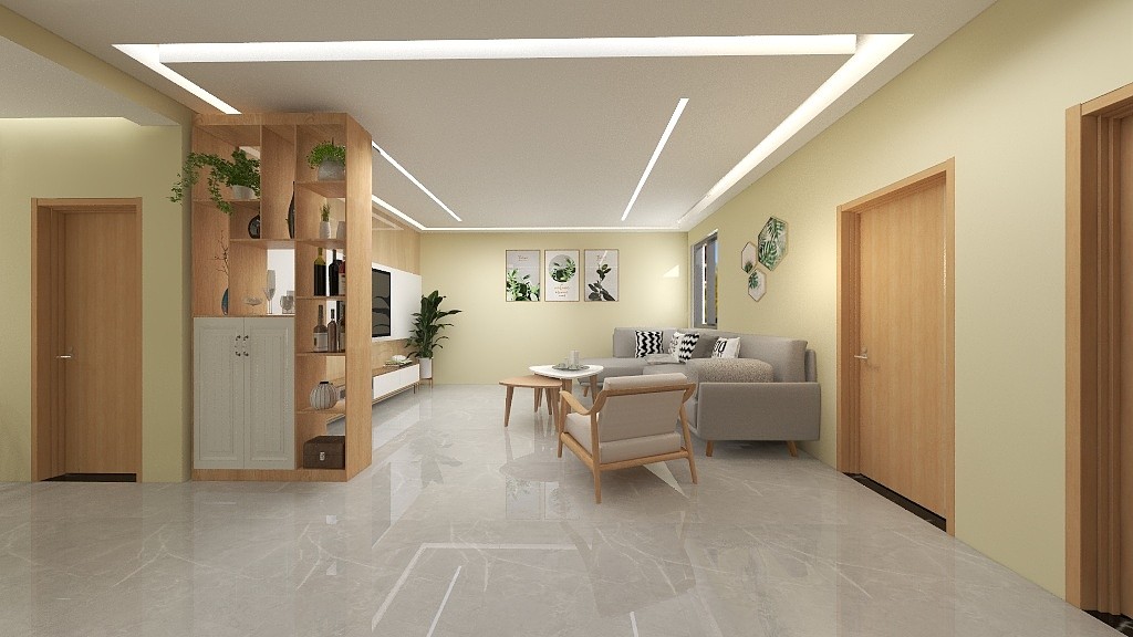 户型为三室两厅一卫 选用北欧风格 无主灯设计。