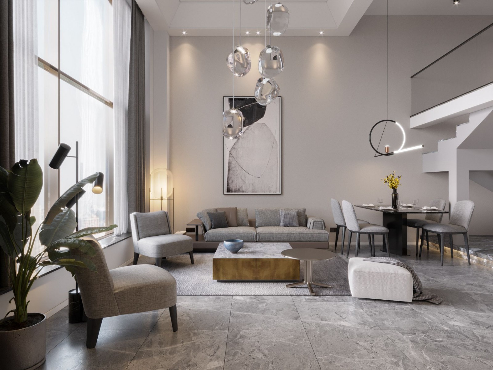 本案例为一个loft,整体的风格为现代轻奢,户型非常方正,采光也好。