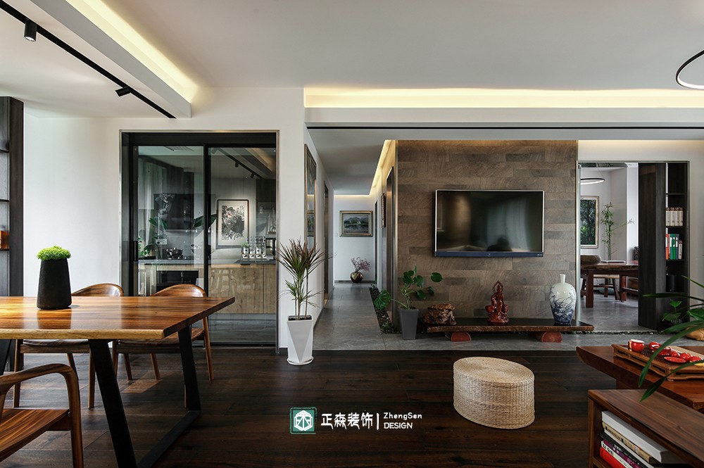 开阔的客厅视角,若隐若现的书房,穿过书房便是主人家的卧房,开阔且又不失房间的私密性