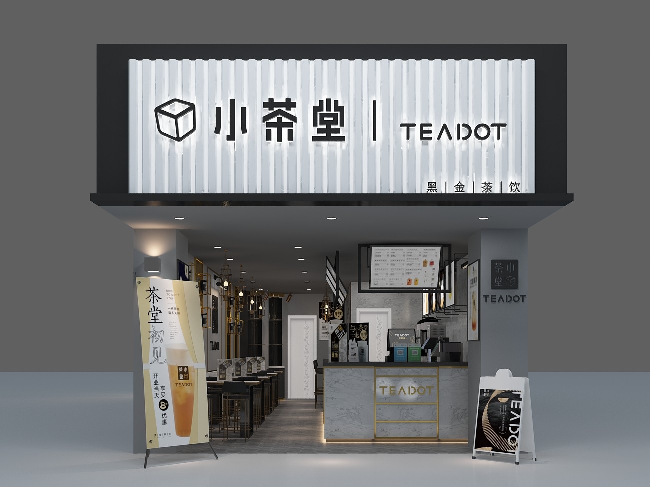门头采用白色亚克力透光板,logo采用黑色背发光字体