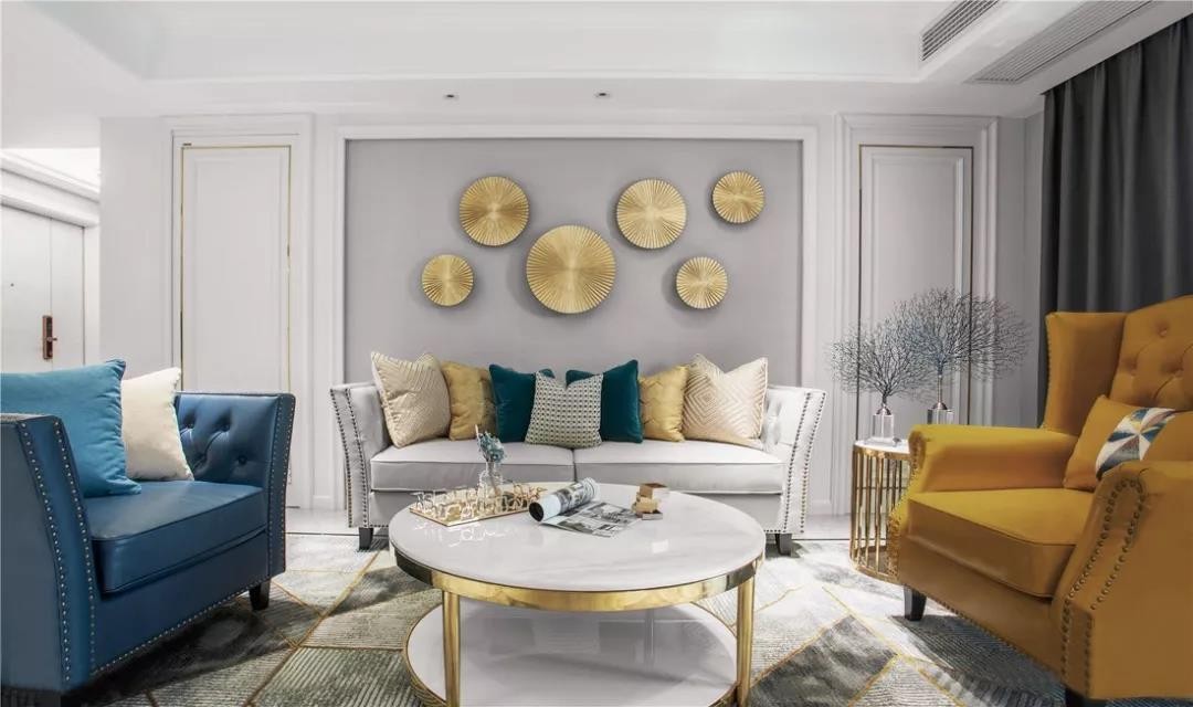 ▲ 金属色的点缀,让客厅的轻奢感急剧增加,别致而优雅。