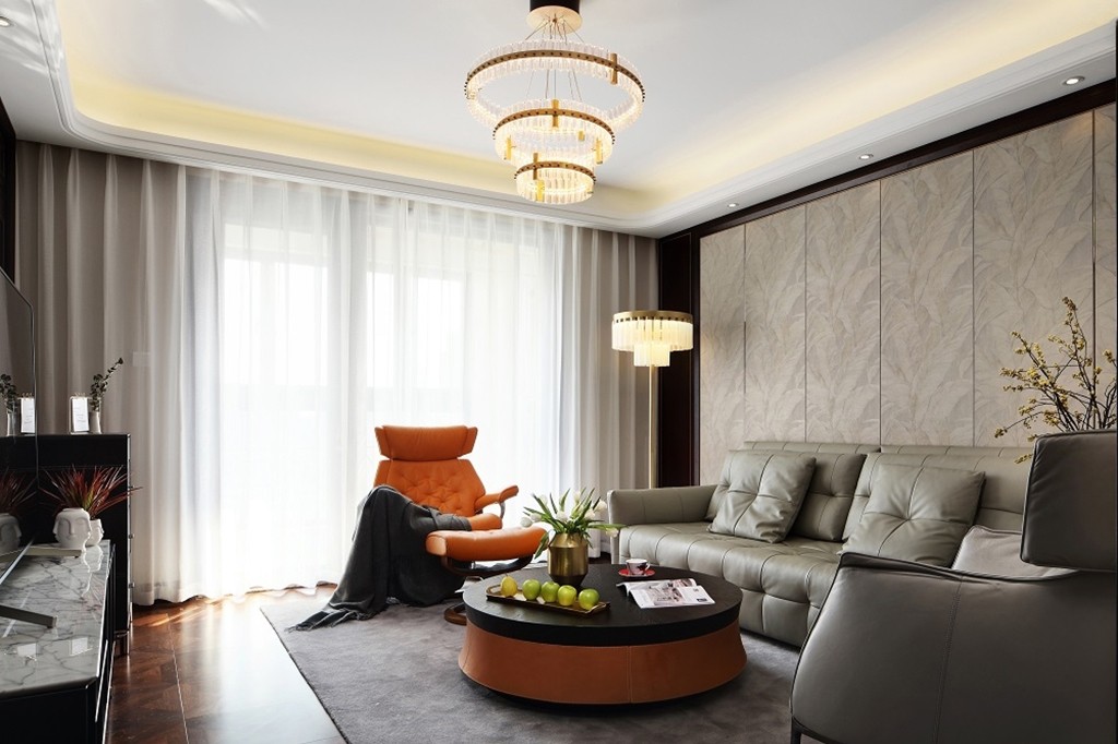 主沙发旁橘色的边几与Stressless的功能椅,遥相呼应,温暖而又阳光,起到画龙点睛的作用。