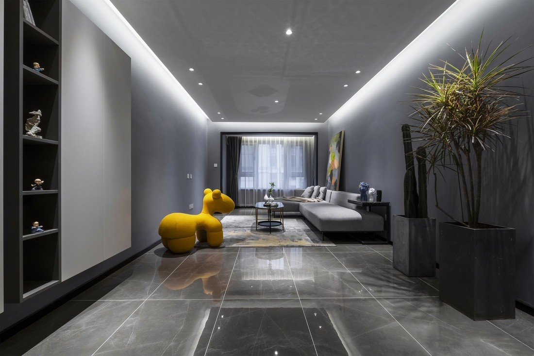 黑与灰以不同材质和纹理出现,延续空间整体的线条美,营造安静内敛的空间感。