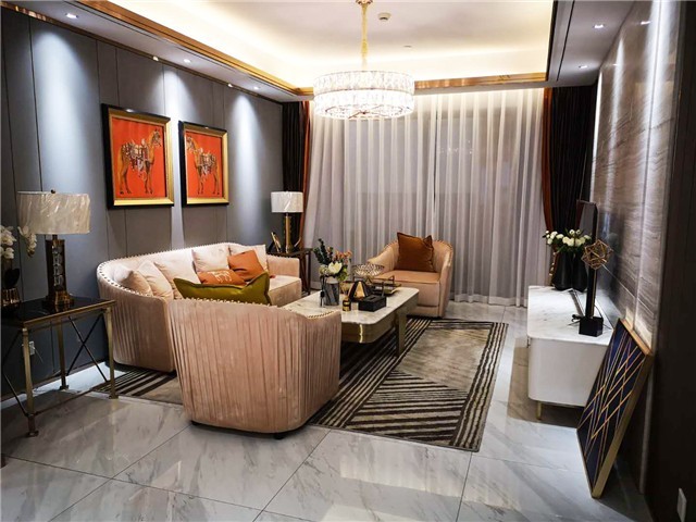 客厅:现代轻奢风格,将优雅时尚的质感结合着现代材质及装饰技巧巧妙地呈现在居室中,展示着精致高端的生活态度。