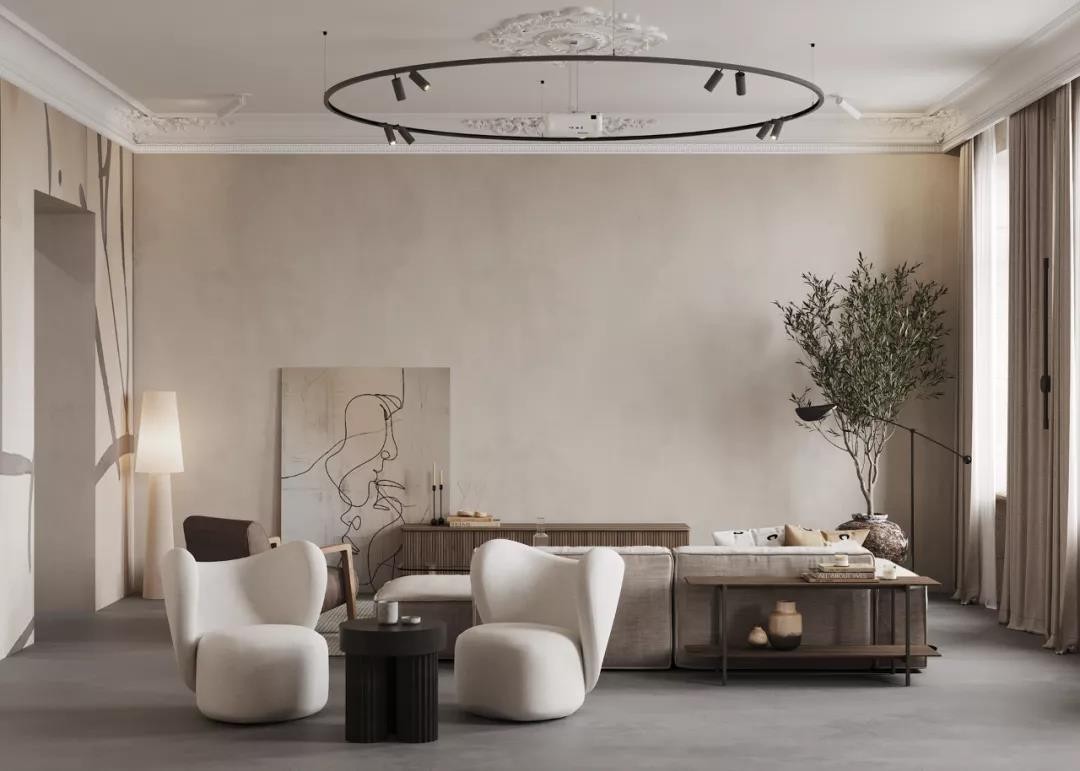 住宅主体用浅米色作为主色调,营造简洁纯粹的空间氛围,在极简的设计风格中又融入精致优雅的元素进行点缀,呈现出***的空间质感,欧式风情满满。