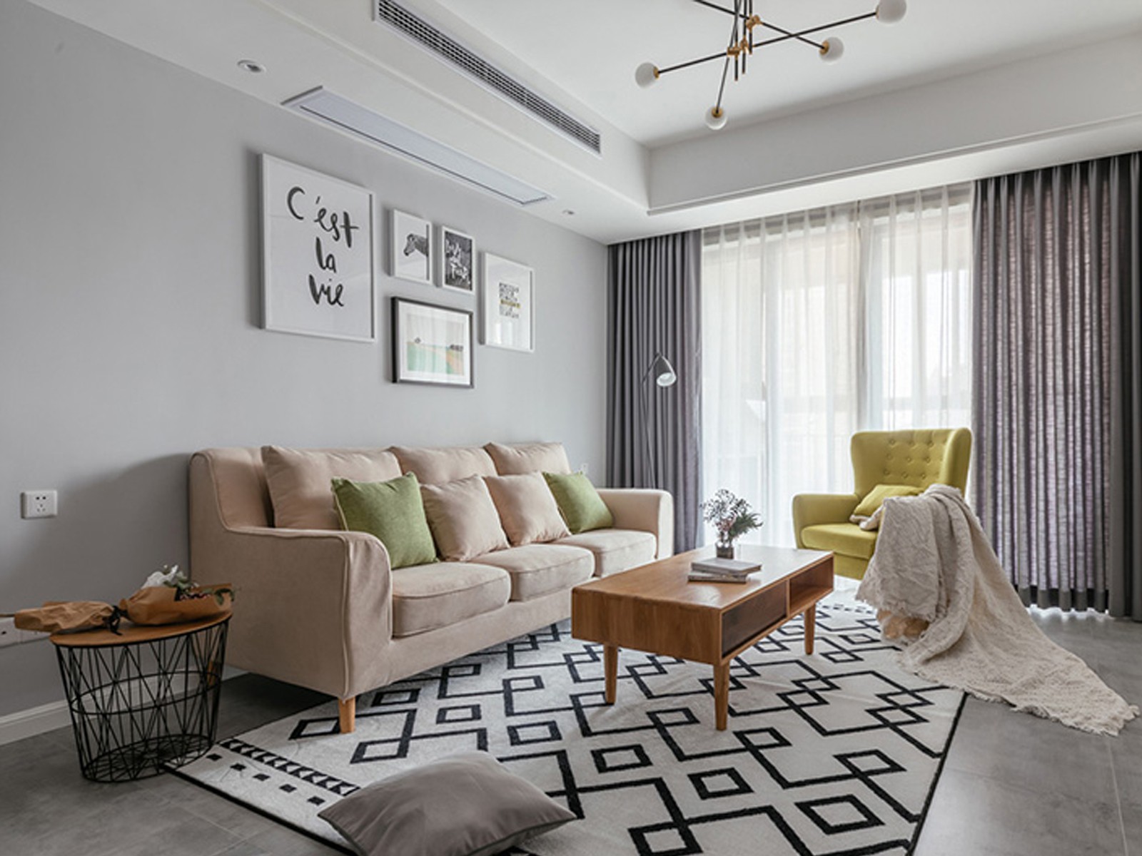 该户型为三室一厅的格局,客户为三口之家,要求简约干净风格,所以他们选择了北欧风格。 由于客户平时亲戚朋友走动较多,所以留下了一个次卧室以便客人留宿。整体的色调以灰色和木 色为主,搭配彩色的调色,整个设计的功能性实用性并存,视觉上美观,简约又不失大气。