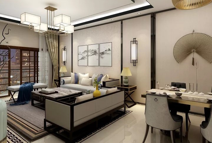 新中式***调,电视墙做了格栅。