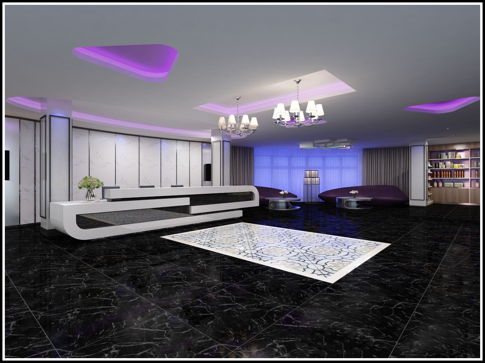上了电梯就是大厅,大厅的设计以极简为主;包括墙面天花的造型都是极其简单的,现代感极强,与原有楼上的KTV做了鲜明的对比;