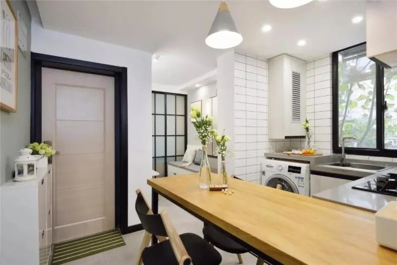 小户型***化展现空间布局,将玄关餐厅和厨房统一设计,一体化空间展现,以北欧风清新设计,带来舒适氛围,开放式厨房打造,让每个空间互补,简约的软装,让空间又美又实用。