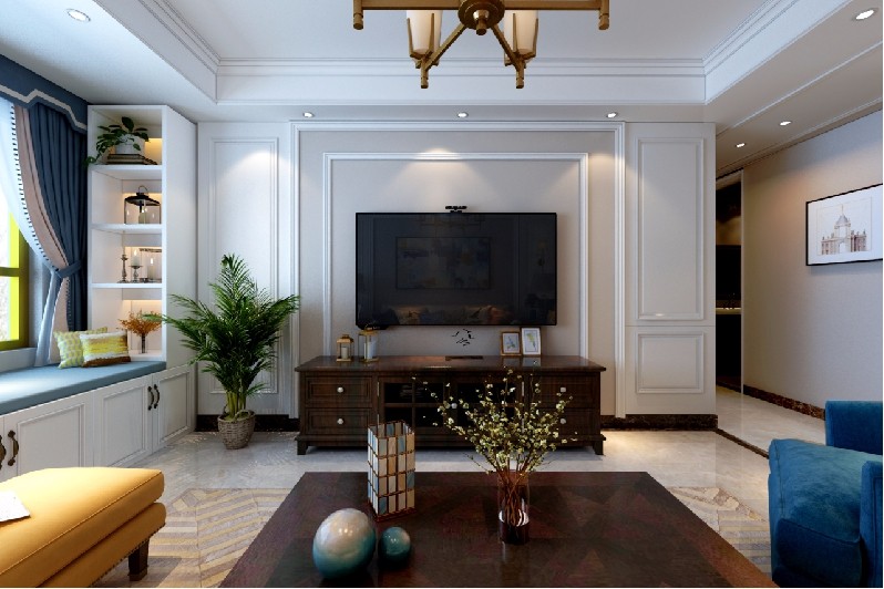 整体色调呈现暖白色,空间造型不是太复杂,通过细致的搭配展示美式风格的特点。同时也让家人感到温馨。