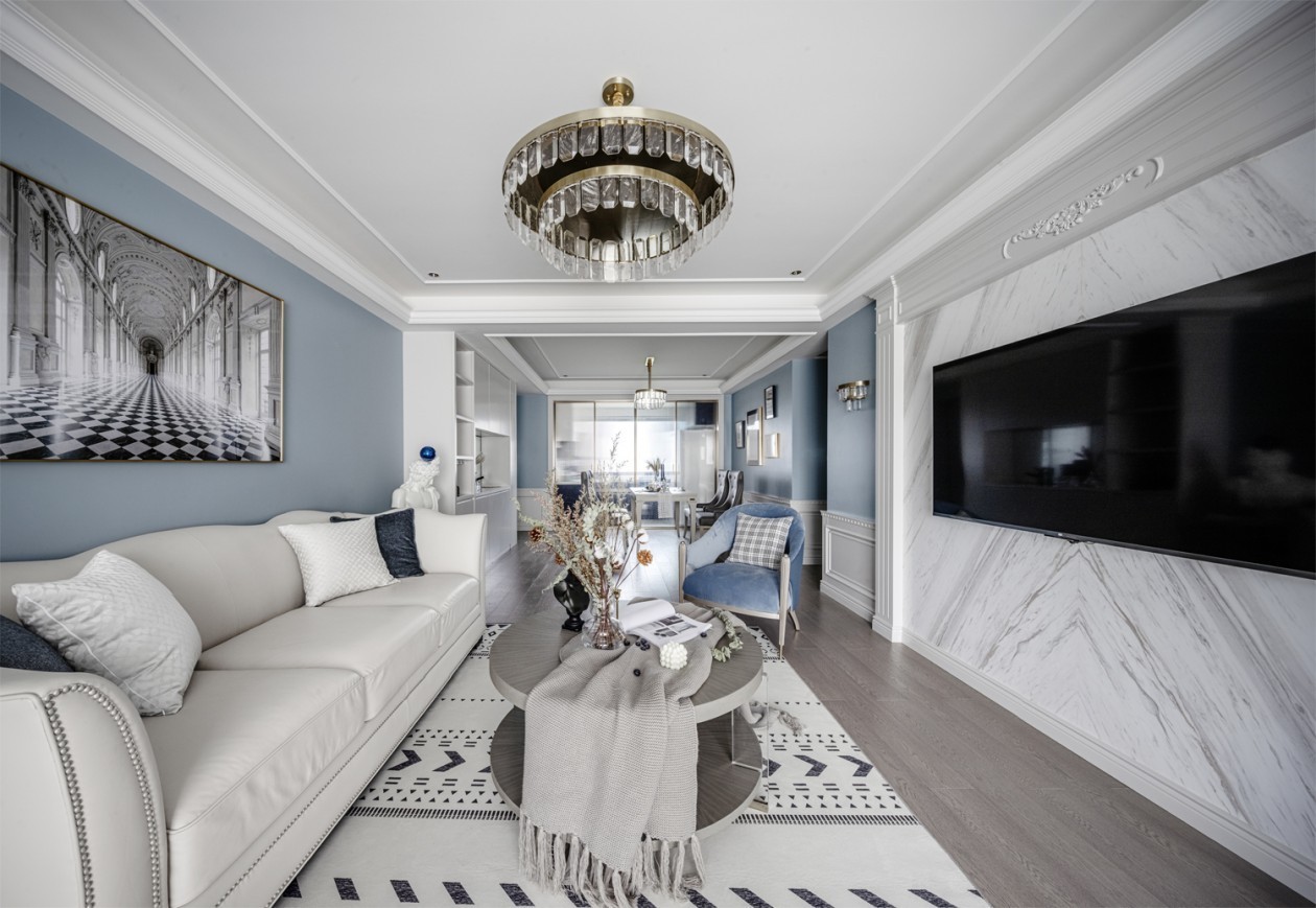 浅薰衣草色打底的素色纹理给人知性、优雅的一面,简简单单的装饰性用于区别空间层次以及创造色彩自然过渡的情景,这种毫不设防地、不具任何攻击力的色彩搭配,有种温柔阳光穿透树梢般的梦幻感觉。
