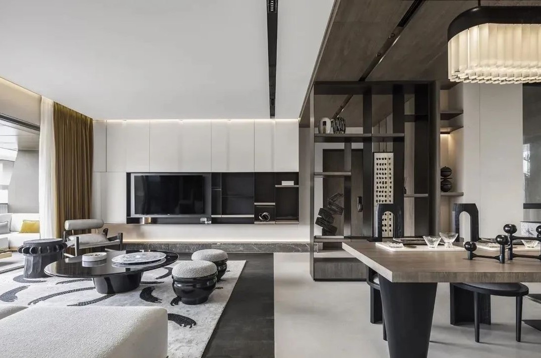 墨色***材质方寸之中有结构、有线条、有图像。黑金属、墨地坪、白石材、灰布艺与烛光墨黑既白。结合现代中的几何切割元素,兼容留白与墨线以利落精致的手法诠释全***印象。