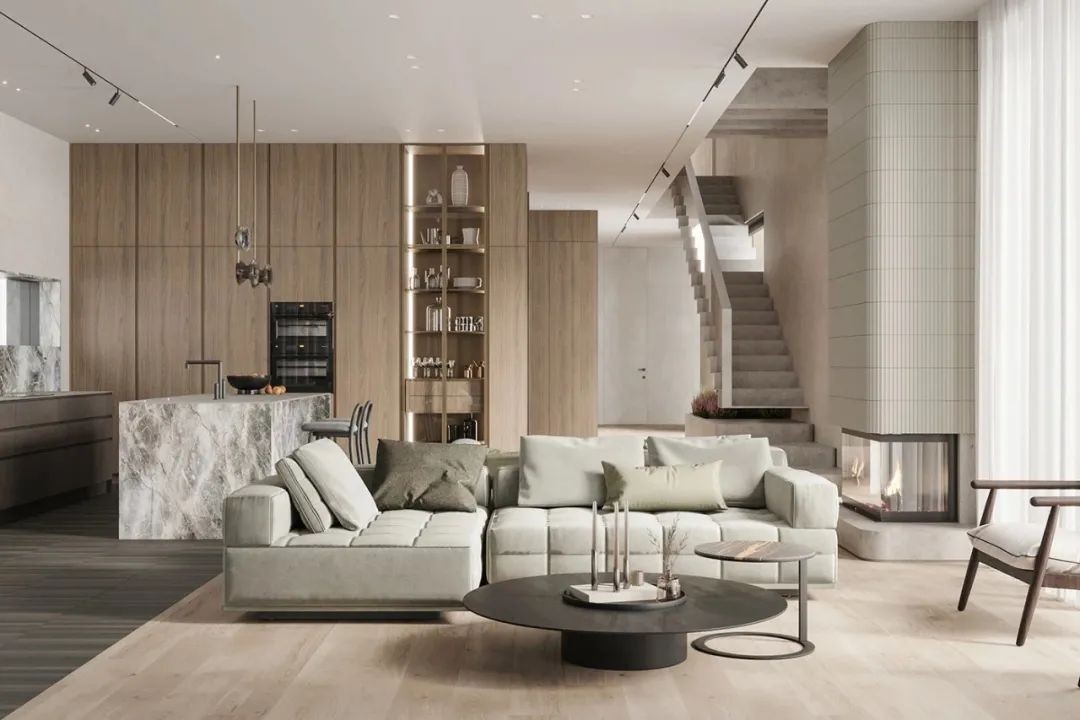 此设计多选用木色与灰色,完美将纹理与色调融合,励志创造一个和谐统一的简单现代化空间。