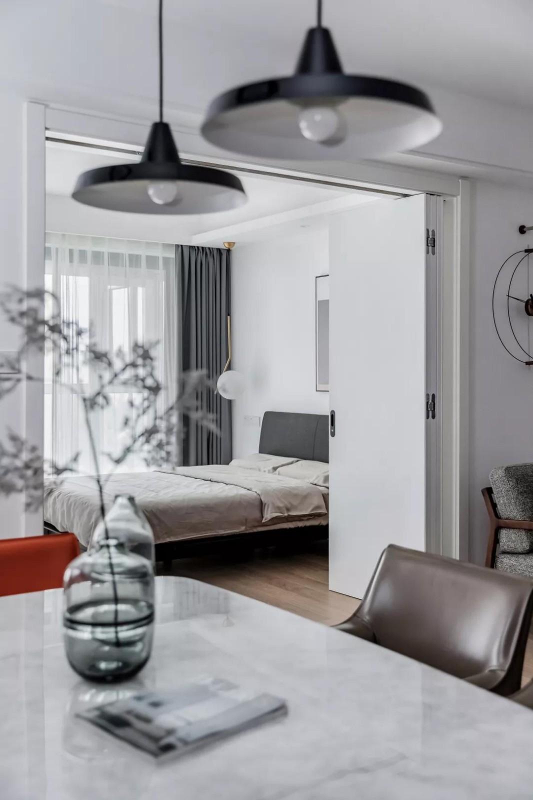 2个卧室的房门挨着一起,以上折叠门在日常能为客餐厅带来更多的采光与通风对流,同时也显得宽敞。