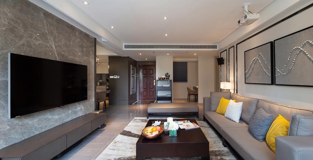 整个空间色彩以灰色调为主,局部增加灰蓝色。开放式的书房,增添了居住的互动性。客厅也显得更为宽敞与明亮。开放式的设计,让厨房不再是一个人孤单的“战场”。