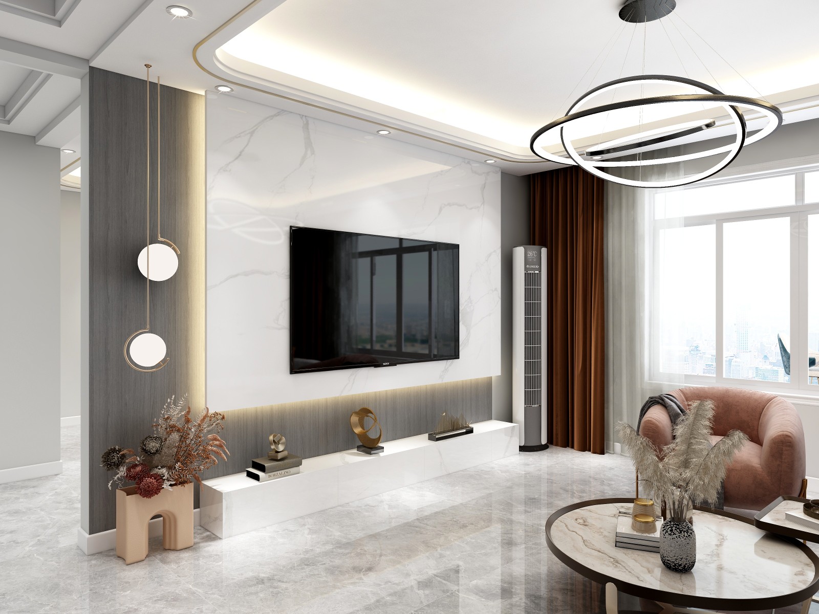 大版石材背景墙搭配木饰面彰显时尚