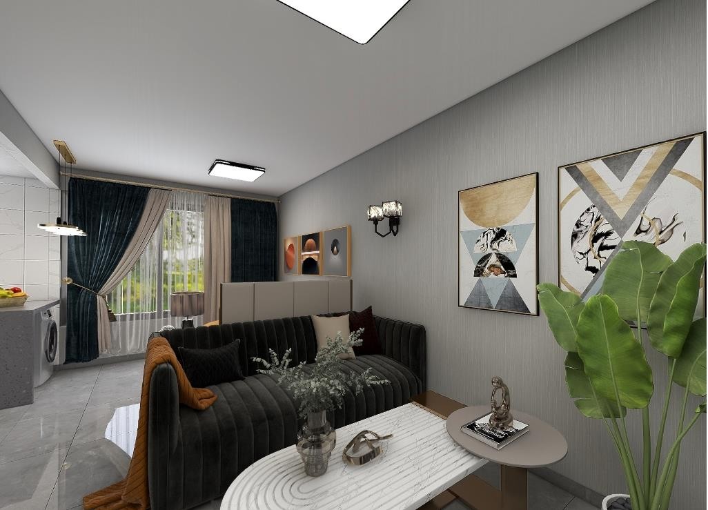 设计元素以灰色系为主,沙发搭配窗帘有种欧式风,整体设计不失大气。