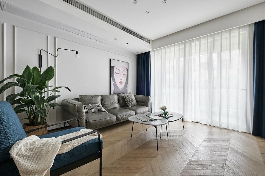 整个空间以白色为主点缀原木色,全屋地板鱼骨拼, 清新自然地感觉扑面而来
