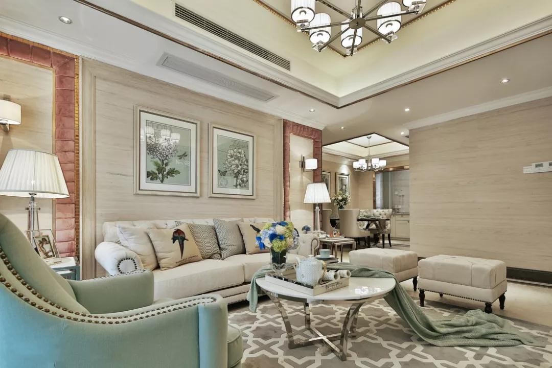 这是一套面积为103平的欧式三居室,以米白色为主色调,整体装潢低调清雅,浪漫又有气质。