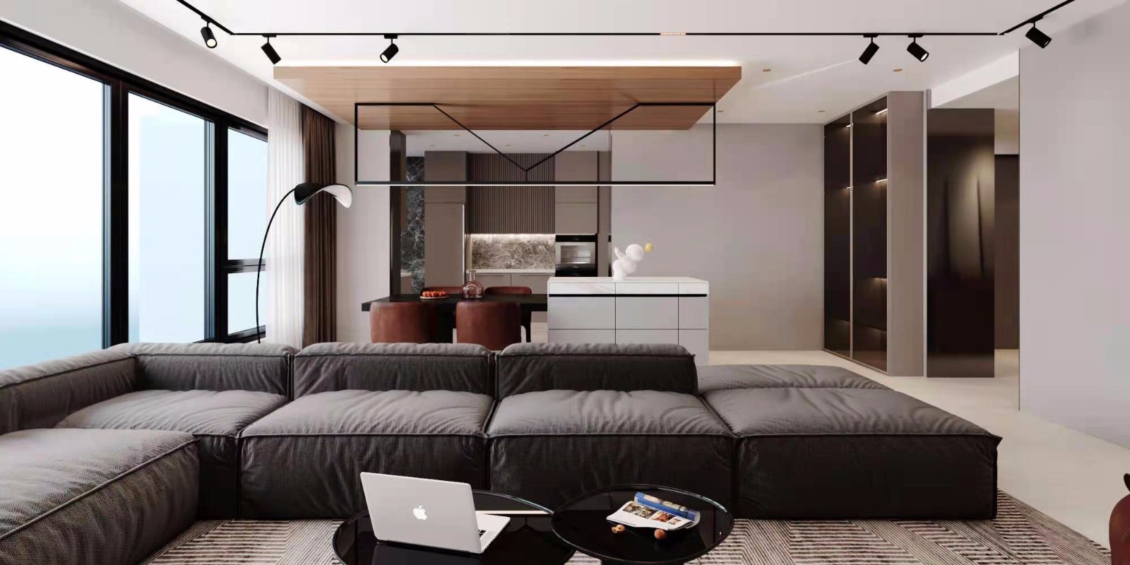 客厅加沙发和吧台进行空间独立性